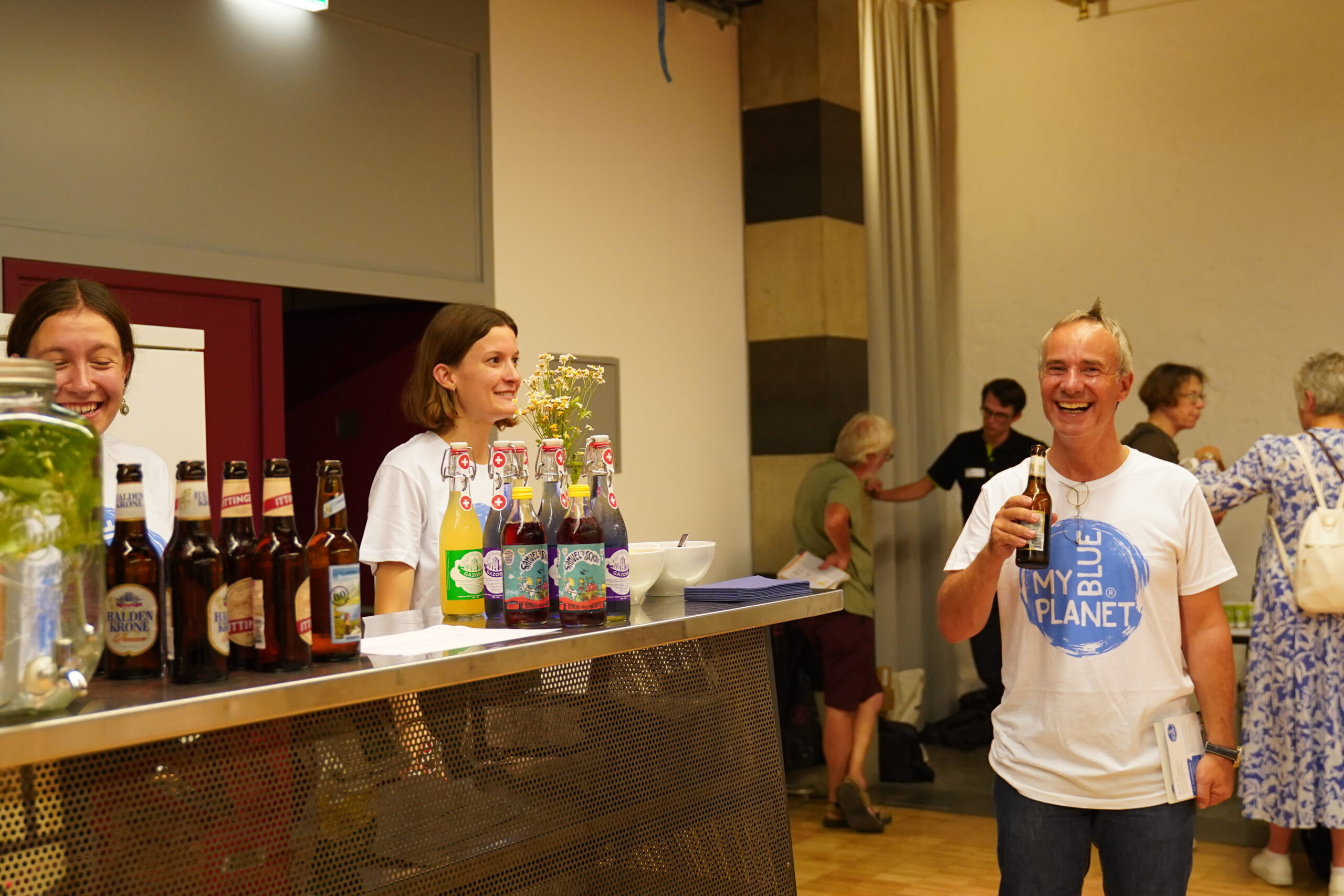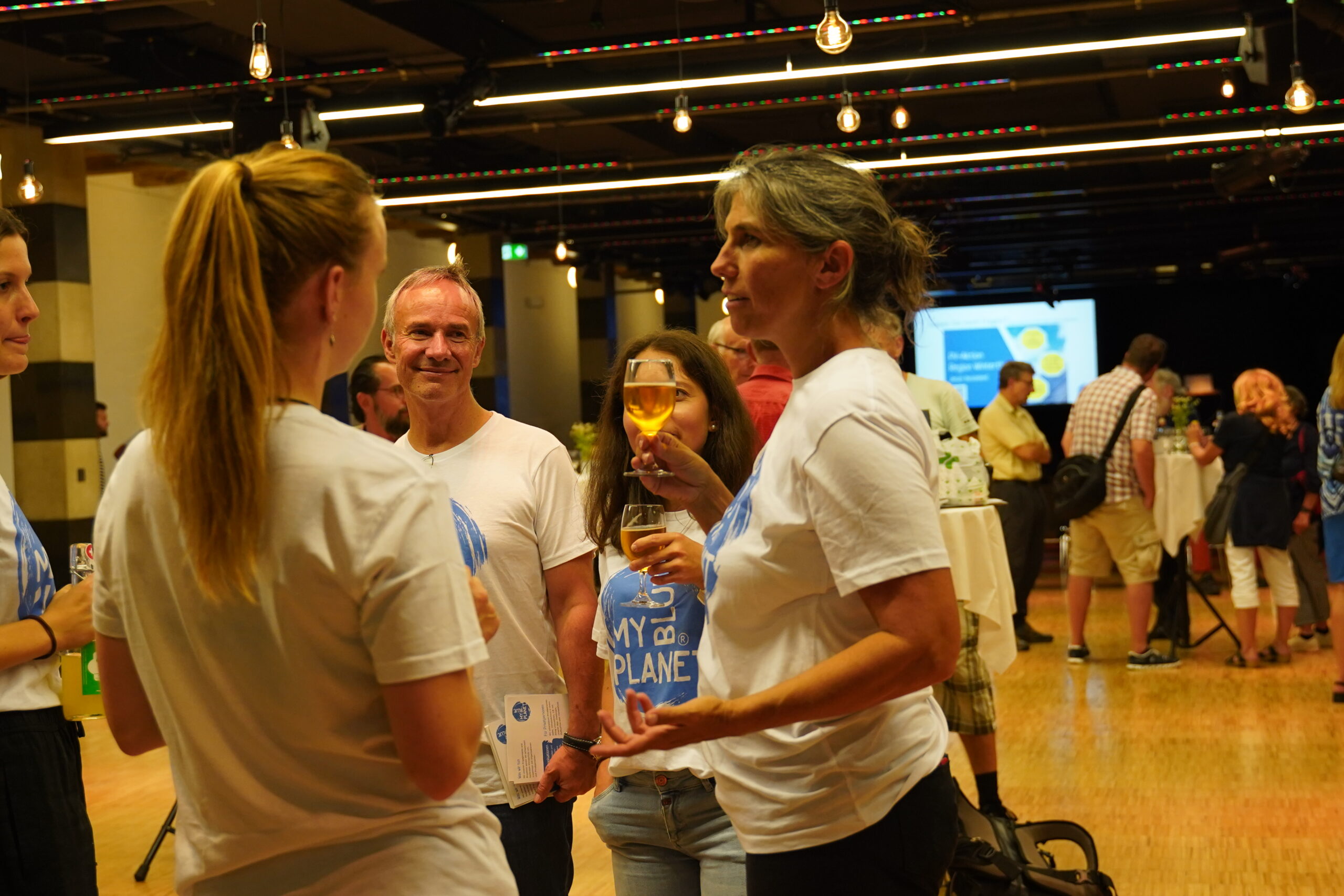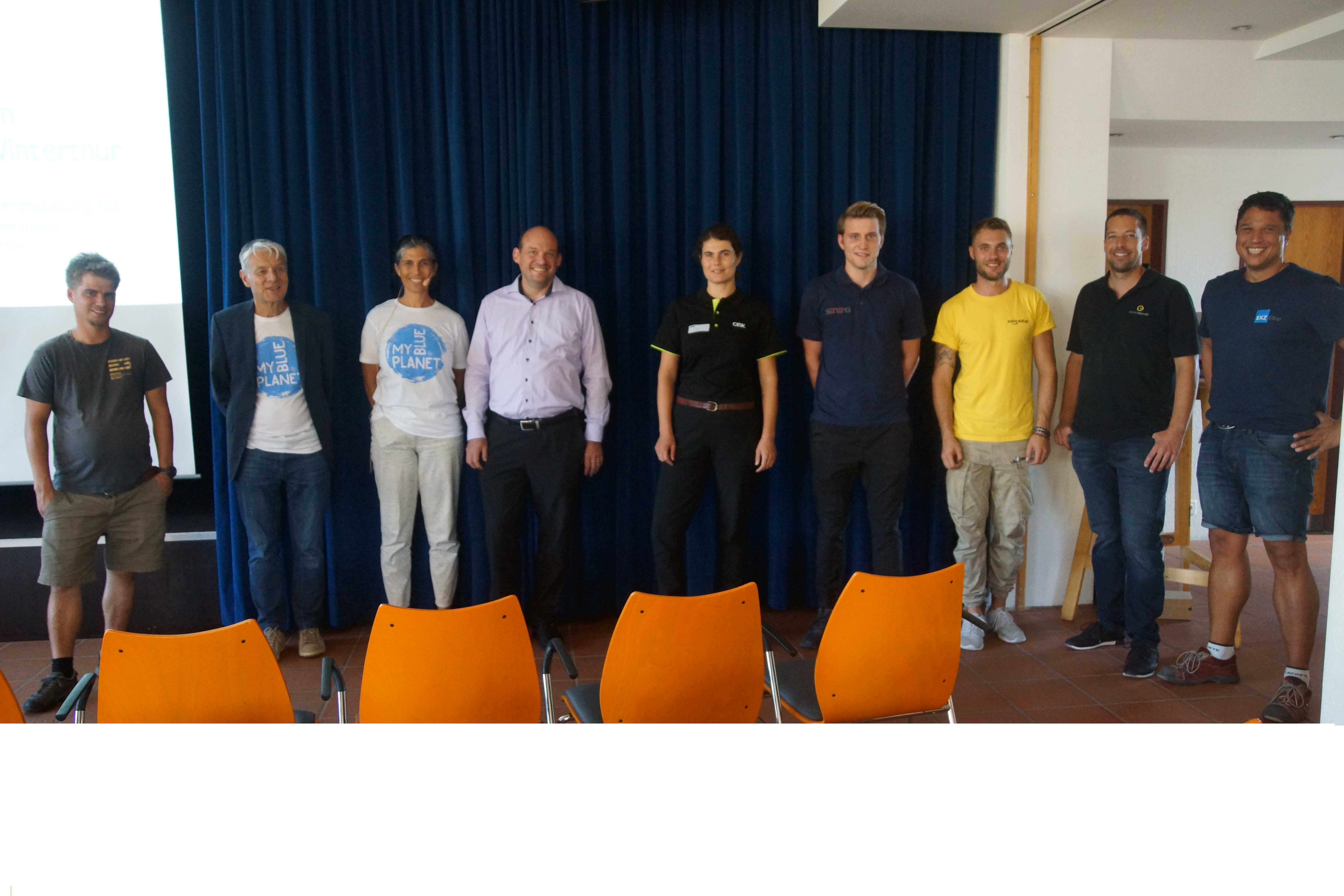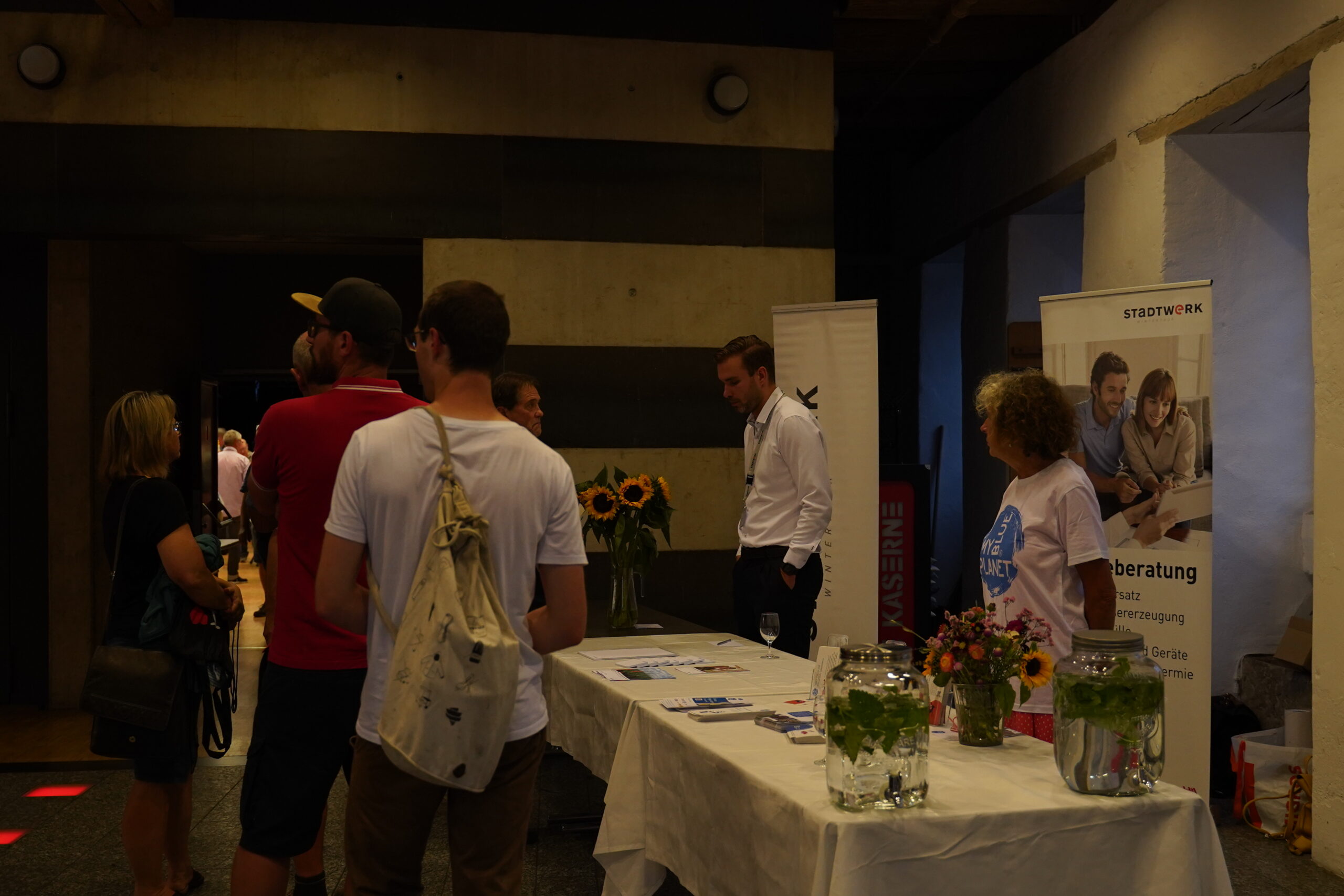 Die 170 gestuhlten Plätze waren schnell besetzt. Etwa 250 BesucherInnen fanden den Weg in die Alte Kaserne, wir sind begeistert! Auf die Ansprache von Stadtrat Stefan Fritschi folgte der Infoteil unserer Kampagnenleiterin Ina Paschen, fachmännisch unterstützt von Martin Ovenstone der Energiewendegenossenschaft Winterthur. Nach dem offiziellen Teil übernahmen unsere Solar-Installateure das Ruder und kümmerten sich um die Anliegen der Besucher:innen. Die acht anwesenden Partnerunternehmen nahmen neben interessanten Gesprächen bereits viele Anfragen mit. 115 Getränke wurden von den Volunteers von MYBLUEPLANET herausgegeben und mindestens so viele interessante Gespräche geführt. Besten Dank an alle Mitwirkenden für diesen gelungenen Auftakt!